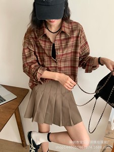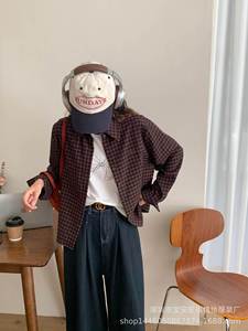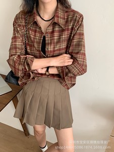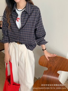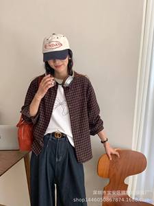 琪镌绘制秋季韩系复古格子轻薄透气衬衫女装休闲宽松遮肉长袖衬衫