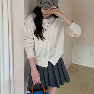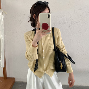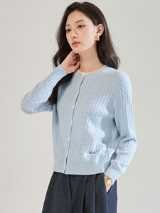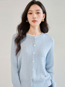 2025秋季绞花简约撞色领羊毛麻花针织开衫通勤气质长袖毛衣25618