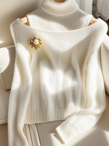 高级感超好看白色高领毛衣女2024冬季软糯慵懒风内搭打底针织上衣