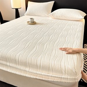冬天加厚雕花牛奶绒床笠单件加绒床单罩珊瑚绒床垫套保护罩三件套