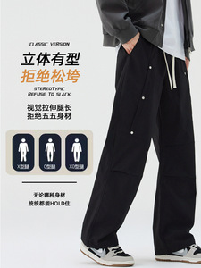 OLA秋季阔腿裤休闲复古韩版潮流垂感宽松显瘦工装裤户外休闲长裤