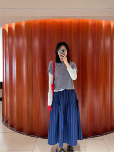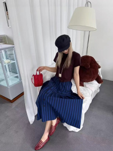 SHORT短句设计师品牌 25早秋款条抽褶条纹复古半身裙宽松休闲伞裙