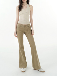 美式百搭复古卡其色低腰微喇叭工装牛仔裤女宽松显瘦阔腿拖地裤子