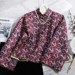 深圳南油2025新款香云纱提花新中式国风外套立领珠扣时尚宽松上衣