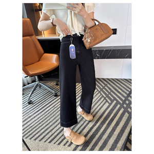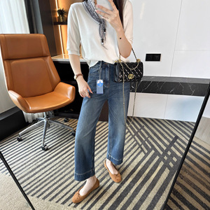 开了修腿特效!~设计感花边直筒牛仔裤女秋季新款高腰九分阔腿裤