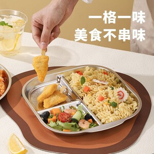 厂家直销不锈钢方型三格分格餐盘宝宝定量饭盘大人定量减脂餐盘