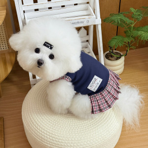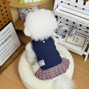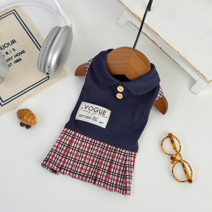 秋冬学院风宠物衬衫裙猫咪比熊泰迪雪纳瑞小型犬外穿假两件情侣装
