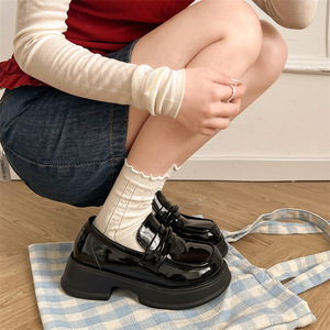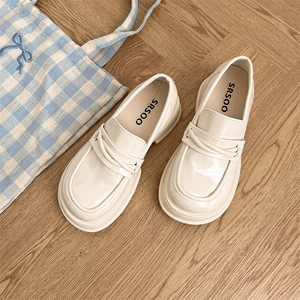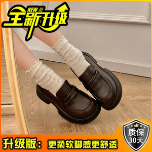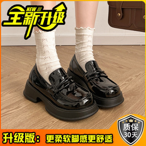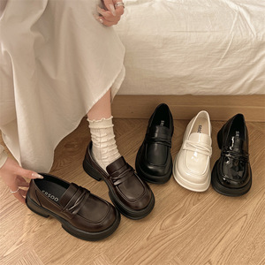 英伦风厚底小皮鞋女鞋春秋时尚百搭增高单鞋黑色一脚蹬粗跟乐福鞋