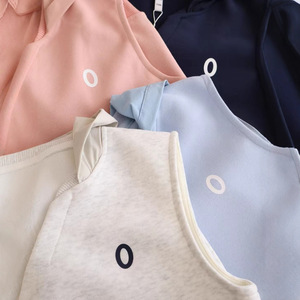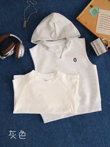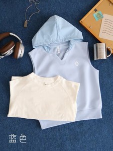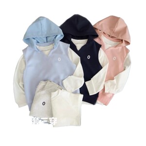 25ss秋季新款男女童户外纯白色打底衫+连帽V领马甲中大童两件套