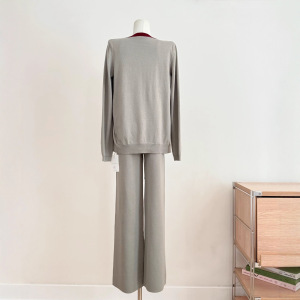 撞色针织修身背心女早秋韩系外搭开衫上衣百搭休闲裤套装