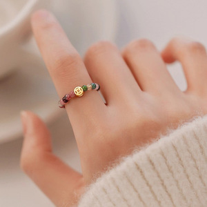 碧玺戒指女轻奢小众闭口弹力绳高级感食指戒彩色串珠铜钱戒子指环