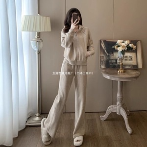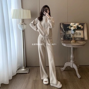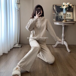 欧货高端连帽加绒卫衣套装女秋冬时髦洋气休闲运动服阔腿裤两件套