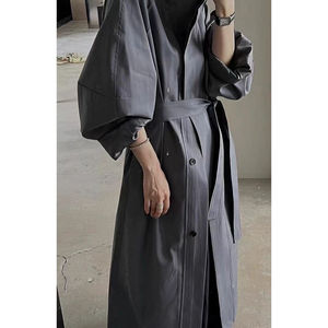 2025年秋季高级感冷淡系气质慵懒风灰色长款立领风衣外套女上衣