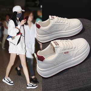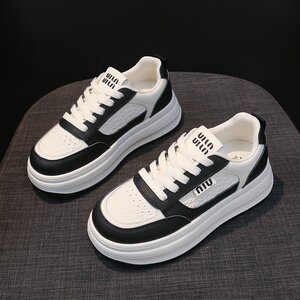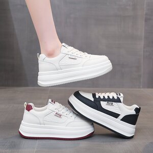 厚底板鞋女2025秋季新款防滑小白鞋增高韩版户外休闲系带女单鞋3