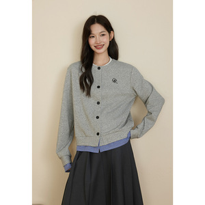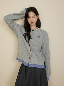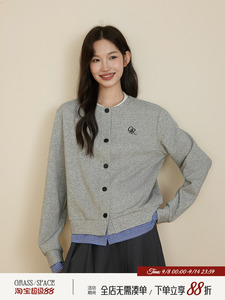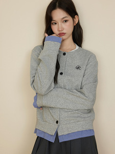原野空间GRASS SPACE假两件格子开衫卫衣女春秋休闲长袖上衣外套