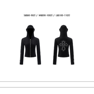美式潮牌十字架烫钻设计感简约正肩开衫上衣女修身百搭连帽外套潮