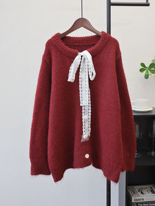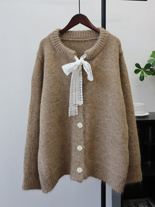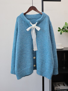 加厚中长款系带蝴蝶结毛衣外套2025秋冬新款宽松大码针织开衫女潮