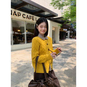 宋正恩绿色针织开衫毛衣外套女秋季新款毛衫外搭高级感韩系小上衣
