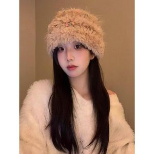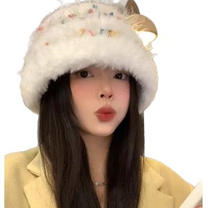 小糖豆毛线帽子女冬季显脸小加厚保暖针织毛绒帽毛茸茸白色渔夫帽