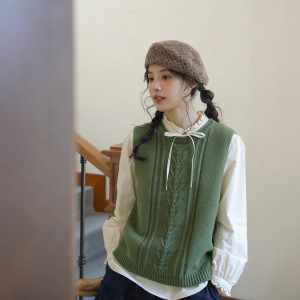 2025秋季新款文艺甜美气质复古绞花毛衣马甲上衣女圆领套头背心