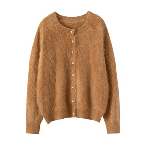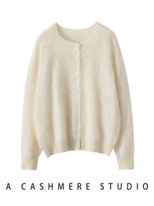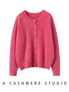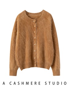 100%山羊绒拉绒小香风女士外套软糯开衫九针常规秋冬针织毛衣慵懒