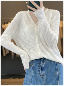 夏季百搭V领轻薄针织开衫女气质单排扣纯色宽松上衣外搭晒空调衫