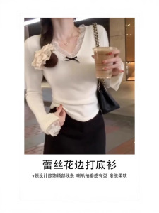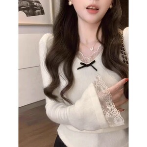 白色蕾丝内搭上衣女秋季高级感喇叭袖打底衫纯欲2025新款初秋打底