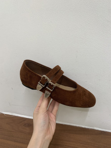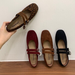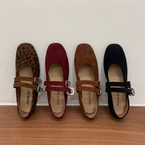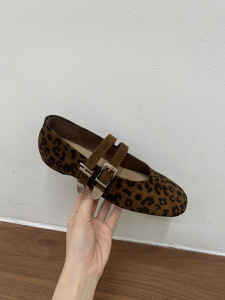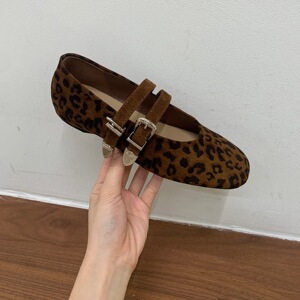 Jonmei for San复古豹纹双扣带芭蕾舞豆豆单鞋女2025绒面玛丽珍鞋