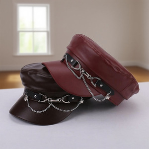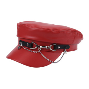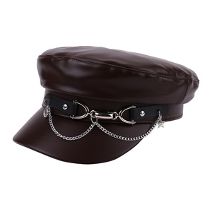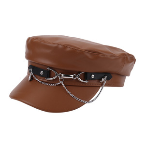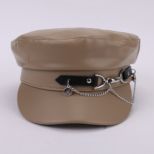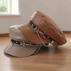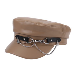 2025新款初秋时尚网红ins链条皮带标平顶帽户外旅行显脸小八角帽