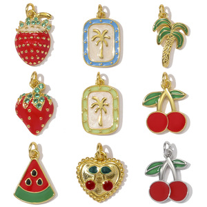 S925纯银滴油樱桃草莓西瓜diy吊坠女椰子树爱心时尚耳环饰品