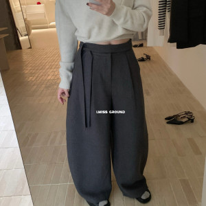 i miss2025秋季新款设计感高腰显瘦阔腿裤女宽松休闲直筒拖地长裤