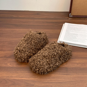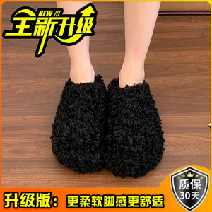 休闲毛毛拖鞋女款秋冬季2025新款时尚厚底包头一脚蹬加绒卷毛拖鞋