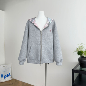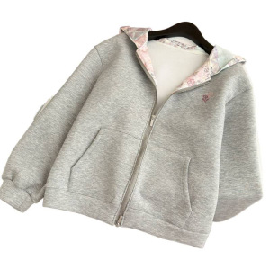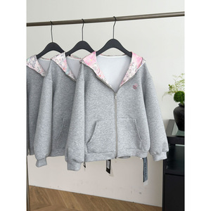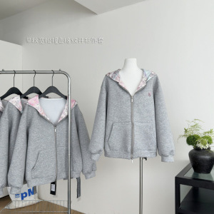 塞纳2025秋季新款灰色连帽卫衣外套女宽松甜美休闲夹克