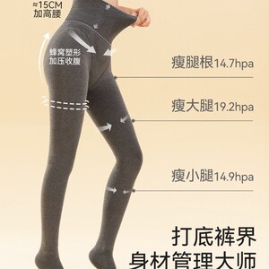 高腰收腹打底裤女秋冬加绒收腹棉质加厚灰色加鱼骨连裤袜不卷边