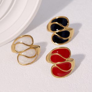 欧美热销不锈钢滴油开口戒指女时尚百搭18k金色钛钢指环手饰跨境
