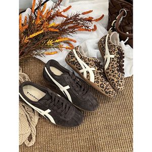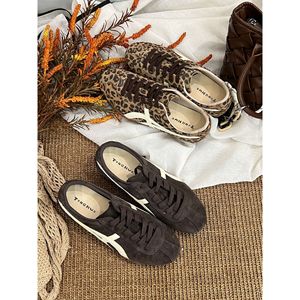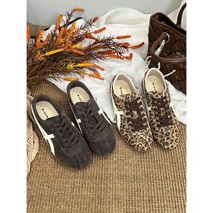 2025秋季爆款豹纹德训鞋女款反绒皮平底显脚小百搭美式复古阿甘鞋