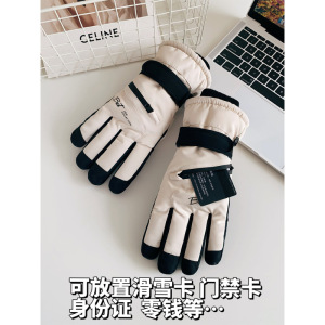滑雪手套女士冬季保暖可触屏防寒防泼水加绒加厚电动车骑行手套男