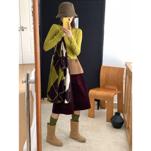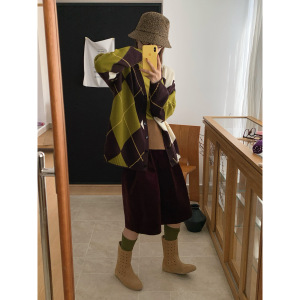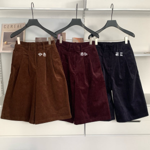 Vaoom-韩系百搭氛围感超显瘦半松紧腰设计灯芯绒五分休闲裤L010