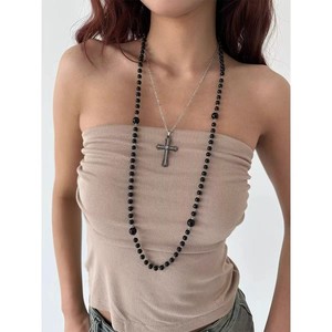 复古暗黑风十字架项链女哥特风长款镶钻毛衣链小众甜酷锁骨链饰品