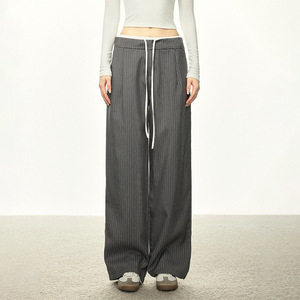 Aaisup美式假两件条纹西装裤女春秋设计感双腰头宽松阔腿休闲长裤