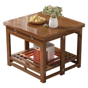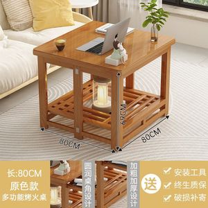 烤火桌家用折叠取暖桌冬季实木无漆正方形双层多功能烤火架茶几