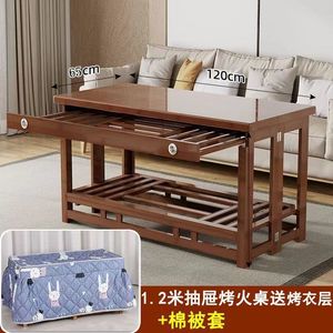 无烤火被【送烤衣层+耐高温】 、原色1.2米抽屉款烤火桌【加厚桌面】