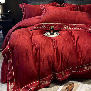水洗棉婚庆四件套喜庆大红色床单被套结婚床上用品2025新款