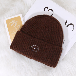 C5580描边圆鼻小狗针织帽 咖啡