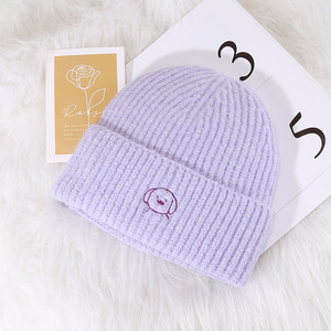 C5580描边圆鼻小狗针织帽 紫色