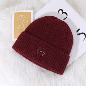 C5580描边圆鼻小狗针织帽 酒红
