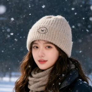 C5580描边圆鼻小狗针织帽 卡其