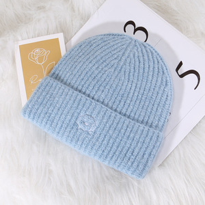 C5580描边圆鼻小狗针织帽 天蓝