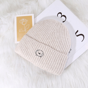 C5580描边圆鼻小狗针织帽 奶白