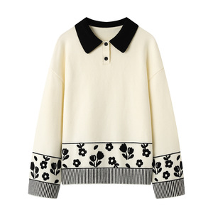 翻领polo领毛衣针织衫2025秋冬季穿搭新款女碎花上衣KSH2509015